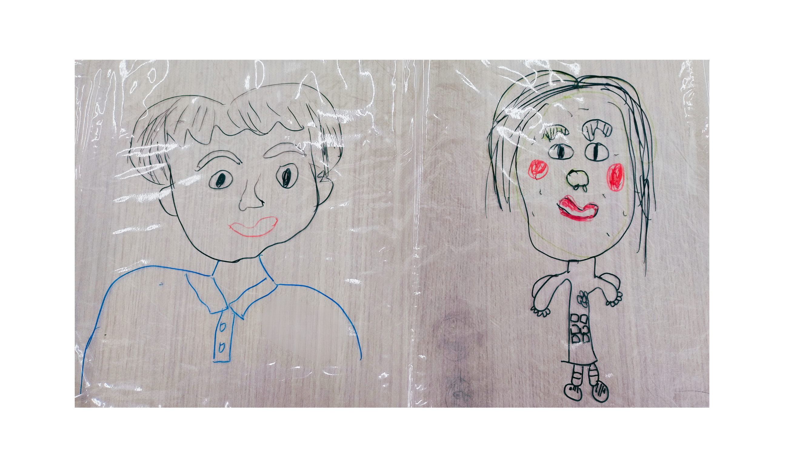 2. 工作員邀請組員透過畫框觀察對方的樣子,然後請組員輪流利用粗身油性筆把對方的面孔繪畫在自己的畫框中